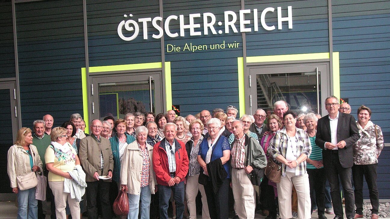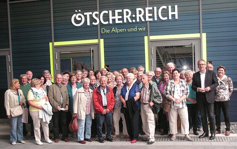 Auf dem Programm stand die Besichtigung des Stiftes Lilienfeld, Mittagessen in Wienerbruck mit kurzem Schnupperrundgang in den Naturpark. Weiter ging es mit der Mariazellerbahn zum Ausstellungsort Frankenfels-Laubenbachmühle. In dieser wird die alpine Lebenswelt der Menschen, die Land- und Holzwirtschaft, Pilgern und Tourismus thematisiert. Die Gruppe wurde vom Geschäftsführer der Nö.Landesausstellungen Kurt Farasin begrüßt (im Bild zweiter von rechts).